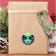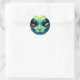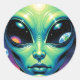 Sticker Rond Visage Alien avec des planètes Réflexions dans les
