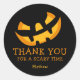 Sticker Rond Visage de citrouille effrayant Merci