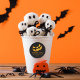 Visage de citrouille effrayant lumineux avec les mots "merci pour un moment effrayant" et le nom de l'enfant.