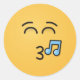Un émotion sifflante avec des yeux souriants et une note musicale.