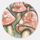Sticker Rond Visages de champignon rose