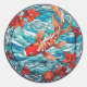 Sticker Rond Vitrail asiatique style Koi Poisson et Camellias