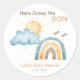 Sticker Rond Voici Les Plaques De Papier Son Baby shower