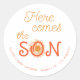 Sticker Rond Voici venir le fils shower bébé garçon soleil