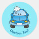 Voiture de dessin animé bleu souriant avec bulles de savon. Couleur arrière - plan personnalisée. Texte personnalisé.