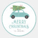 Sympa voiture bleu vert moderne avec sapin de Noël Cadeau classique rond Sticker