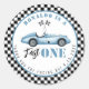 Fast One Blue race car Boy Birthday Merci Classic Round Sticker Articles correspondants disponibles.