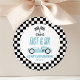 Voici un Autocollant Fast & Six Blue Race Car 6th Birthday Party Favker !