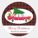 Sticker Rond Voiture rouge rétro portant un arbre de Noël