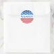 Vote Kamala Harris USA Drapeau Typographie Texte Personnalisé Sticker Rond Classique. Pour une campagne présidentielle de Kamala Harris, un design audacieux et stimulant qui combine typographie et symboles patriotiques pour créer une déclaration visuelle frappante. Au centre du design, on retrouve le nom de Kamala Harris dans une grande typographie élégante. Utilisez une police moderne pour transmettre un sens de l'avenir et du progrès. Pour améliorer l'attrait visuel du design, ajoutez une finition subtile et polie avec un effet d'ombre, donnant à la typographie un sens de profondeur et de dimension. Cette approche met en valeur non seulement le nom de Kamala Harris, mais elle permet également de distinguer les couleurs et les motifs du drapeau avec dynamisme. Ce produit vise à célébrer la candidature de Kamala Harris avec une forte touche patriotique, en utilisant la typographie et le drapeau américain pour créer une déclaration puissante et solidaire pour sa campagne présidentielle.