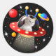 Sticker Rond Votre chat dans une soucoupe volante UFO SciFi