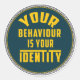 Inspirer positivité et conscience de soi avec cet autocollant audacieux et significatif. Doté du slogan habilitant "Votre comportement est votre identité", ce design sert de rappel quotidien à diriger avec gentillesse, intégrité et authenticité. Parfait pour les ordinateurs portables, les journaux, les bouteilles d'eau, ou toute surface qui pourrait utiliser une touche de motivation. Élevez votre espace et votre état d'esprit avec cet autocollant impactant.
