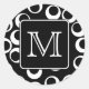 Sticker Rond Votre Lettre. Monogramme noir et blanc. Motif amus