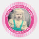Sticker Rond Votre photo Simple Stripes Motif Fuchsia/White
