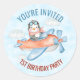 Sticker Rond Vous êtes invité Penguin Avion bleu Anniversaire