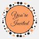 Cet autocollant d'invitation à la fête à pois orange est la façon idéale d'ajouter une touche personnelle à vos invitations à la fête. Le design est agrémenté d'un joyeux motif à points de polka orange. Le texte "You're Invited" écrit dans une police élégante. L'autocollant est personnalisable pour que vous puissiez ajouter votre propre texte. Ce design fait partie de ma collection Polka Dot Paradise. Consultez le site https://bit.ly/polkadotparadise