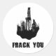 Équipement de forage au gaz naturel, forage, puits et forage en forme de retournement manuel. (renverser l'oiseau). Texte : "Frack You".