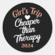 Sticker Rond Voyage de fille 2024 moins cher que les vacances d