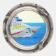 En regardant à travers un vieux hublot un luxueux paquebot qui passe. La navigation dans les océans.