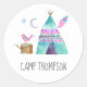 Sticker Rond Watercolor Camping fête d'anniversaire