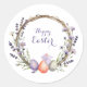 Sticker Rond Watercolor Easter Lavender Wreath Eggs Cute Bunny