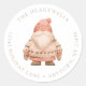 Cet autocollant d'adresse de retour de vacances présente une aquarelle rose et beige Père Noël gnome barbu blanc dans un chandail et casquette tricoté douillet. Ajoutez le nom de votre famille autour du bord supérieur en police serif beige et votre adresse ci-dessous.
