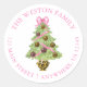 Sticker Rond Watercolor Preppy Leopard Christmas Tree Address