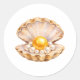 Sticker Rond Watercolor Seashell with Golden and White Pearls