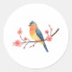 Sticker Rond Watercolor Songbird on Pink Cherry Blossom Branch