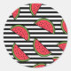 Sticker Rond Watermelon sur Motif Black & White Stripes