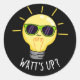 Sticker Rond Watts Up Funny Light Bulb Pun Dark BG