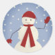 Ce produit comprend un bonhomme de neige agitant dans un casquette rouge et des mitaines rouges.
