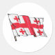 Sticker Rond Waving Georgia Flag Red and White Five Crosses