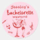 Autocollant rond classique de week-end fantaisiste rouge de cocktail pour enterrement de vie de jeune fille sur la plage