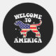Sticker Rond Welcome To America Patriotic Dog New American Citi