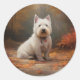 Sticker Rond West Highland White Terrier à l'automne Leaves aut