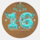 Western Rustic Brown Faux Leather Numéro 16 Favoriser les autocollants. Éléments correspondants disponibles. Personnaliser pour tout événement.