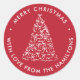 Spread holiday cheer with these modern Christmas stickers featuring a hand-drawn white Christmas tree adorned with playful bows on a bold red background. The circular design showcases your custom greeting and family name encircling the tree for a clean, festive look. Perfect for sealing holiday card envelopes, gifts, and party favors, these stickers add a cheerful, personalized touch to your Christmas mail and seasonal celebrations.