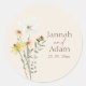 Sticker rond classique Fleur sauvage Jaune - Ajoutez une touche de fantaisie avec cet autocollant rond avec marguerites dessinées à la main et fleurs sauvages doux dans les tons jaune et pêche. Parfait pour sceller des enveloppes, des faveurs de fête ou des sacs-cadeaux, il apporte un charme floral délicat aux mariages, aux douches ou aux événements printaniers.