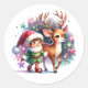 Sticker Rond Whimsical Elf et Reindeer Christmas