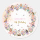 Sticker Rond Whimsical flower fairy garden 4th birthday