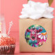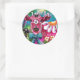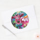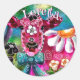 Sticker Rond Whimssal Floral Vache rose Turquoise noir personna
