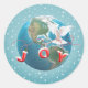 colombe blanche avec texte JOY sur une corde sur un arrière - plan de flocon de neige.