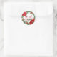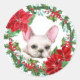 Sticker Rond White Frenchie Poinsettia Holly Berry Wreath