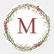 Sticker Rond White Rustic Christmas Wreath Monogram