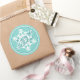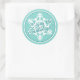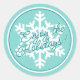Sticker Rond White Snowflake On Teal Aqua Turquoise Blue Green