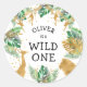 Sticker Rond Wild One Safari 1er anniversaire fête Green Gold