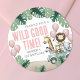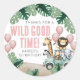Add a sweet, girly touch to your party favors, envelopes, and gifts with this Wild One birthday party sticker, redesigned for a little girl’s celebration. The front features soft pink balloons for a cheerful, playful look, paired with the message Thank you for a wild good time. The text is styled in a bold rustic pink font mixed with a clean gray sans serif, creating a modern yet charming feel. Space is included to personalize the birthday child’s name and age.