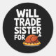 Sticker Rond Will Trade Sister For Turkey Funny Thanksgiving Di
