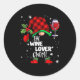 Sticker Rond Wine Lover Gnome Red Buffalo Plaid Matching Family